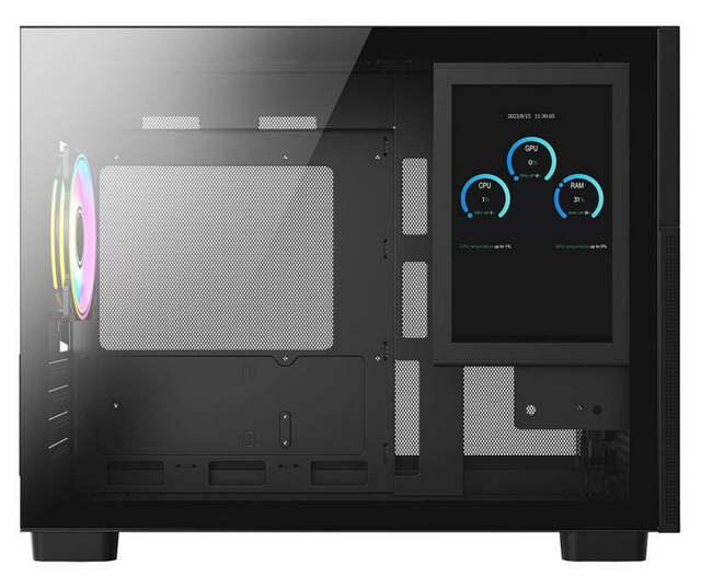 CiT Pro Jupiter Black Micro-ATX PC Gaming Case with 8 Inch LCD Screen 1 x 120mm Infinity Fan Included Tempered Glass Side Panel