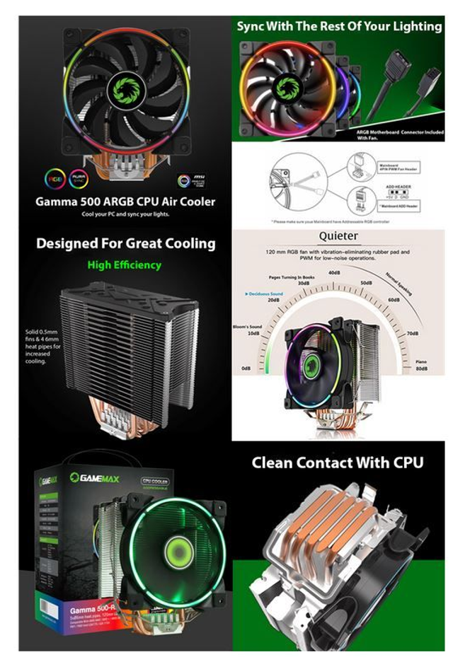 GameMax Gamma 500 Rainbow ARGB CPU Cooler Aura Sync