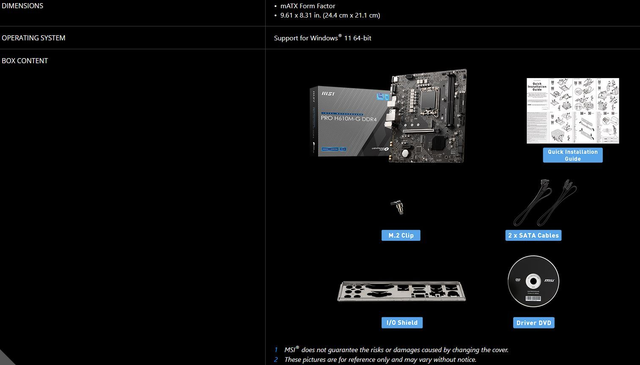 MSI 1700 PRO H610M-G DDR4 M-ATX Motherboard