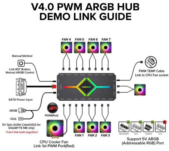 Complete kit to add RGB to pretty much any PC (you will require a free SATA power cable available to power the hub)